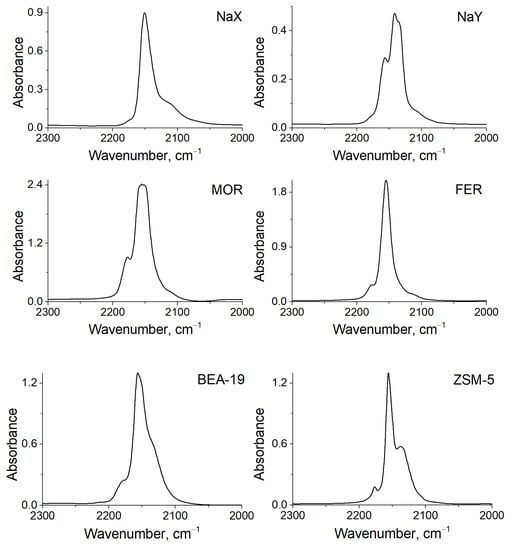 | Zeolite | Cu+-CO *, cm−1 | Cu+-(CO)2 *, cm−1 | Cu+-CO, cm−1 | Cu+-(CO)2, cm−1 |