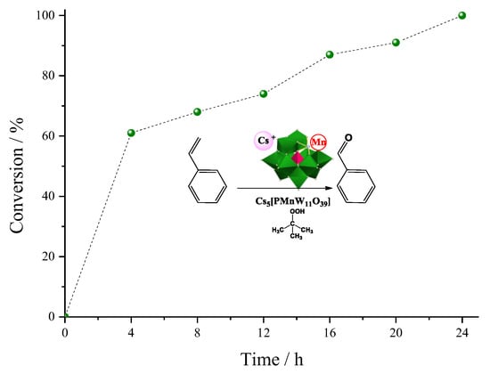 - Pathan, S.; Patel, A. Transition-Metal-Substituted Phosphomolybdates: Catalytic and Kinetic Study for Liquid-Phase Oxidation of Styrene. Ind. Eng. Chem. Res. 2013, 52, 11913–11919. [Google Scholar] [CrossRef]