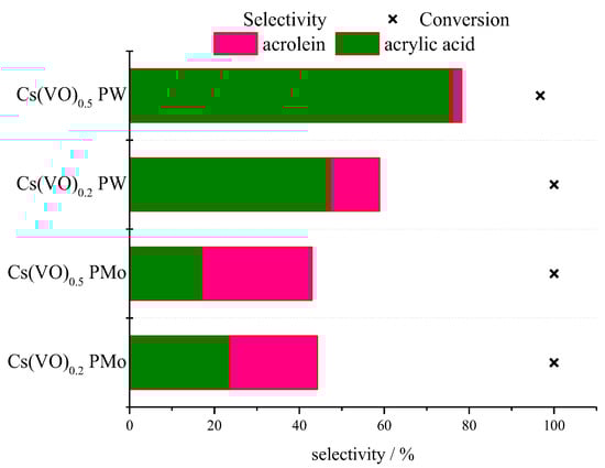 - Li, X.; Zhang, Y. Oxidative Dehydration of Glycerol to Acrylic Acid over Vanadium-Substituted Cesium Salts of Keggin-Type Heteropolyacid. ACS Catal. 2016, 6, 2785–2791. [Google Scholar] [CrossRef]