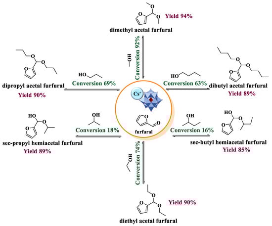 - Da Silva, M.J.; Lopes, N.P.G.; Bruziquesi, C.G.O. Furfural acetalization over Keggin heteropolyacid salts at room temperature: Effect of cesium doping. React. Kinet. Mech. Catal. 2021, 133, 913–931. [Google Scholar] [CrossRef]