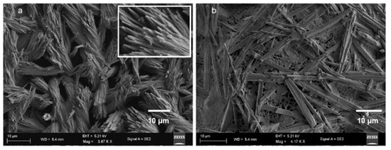 (a) FE-SEM image of compound 1 in DMSO and (b) FE-SEM image of xerogel form by compound 1, β-CD in DMSO and water mixture.