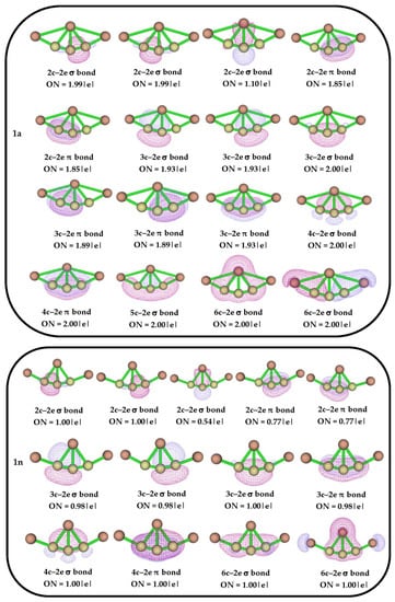 AdNDP bonding patterns with occupation numbers (ONs) for isomers 1a and 1n.