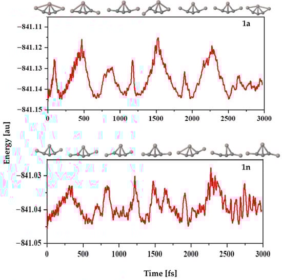 Time evolution of the total energy of isomers 1a (top) and 1n (bottom) calculated at the PBE0-D3/def2-TZVP level.