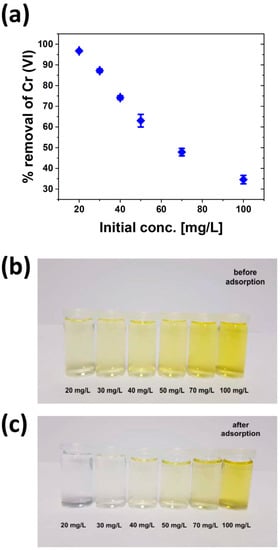 The fraction of Cr(VI) removed was calculated using Equation (1)