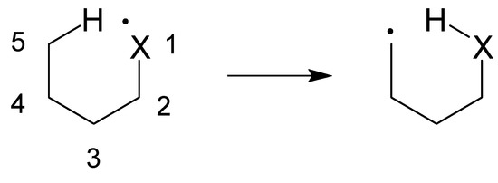 Schematic of a 1,5-hydrogen atom abstraction reaction (X = C, N or O).
