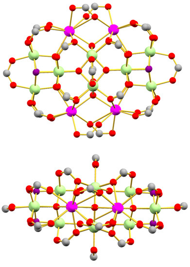 - King, P.; Stamatatos, T.C.; Abboud, K.A.; Christou, G. Reversible Size Modification of Iron and Gallium Molecular Wheels: A Ga10 “Gallic Wheel” and Large Ga18 and Fe18 Wheels. Angew. Chem. Int. Ed. 2006, 45, 7379–7383. [Google Scholar] [CrossRef]