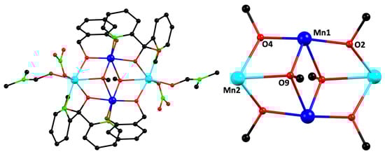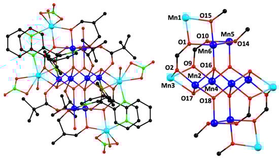 For complexes 15, the Mn oxidation states and the protonation level of O atoms were determined by charge-balance considerations, inspection of the metric parameters, BVS calculations [63,64] (Table S2), and the observation of Jahn–Teller distortions for the octahedral MnIII ions, which take the form of axial elongation.