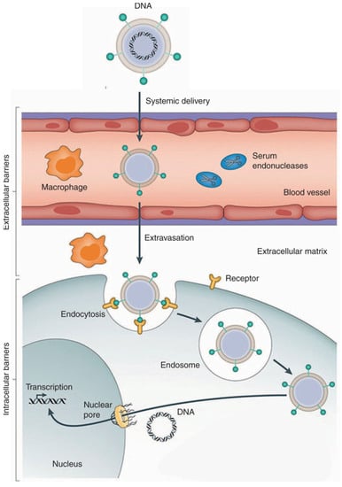 Biological barriers involved in gene delivery. Adapted with permission from the authors of [43].