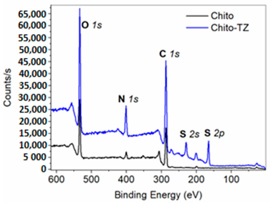 Wide XPS scans of Chito and Chito-TZ.