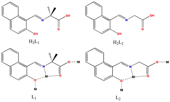 Luminescent MOFs are a highly significant sub-class of 3D coordination polymers, since they hold great value as chemical sensors upon combining the porosity of a specific MOF and/or its selectivity towards a guest molecule, along with their inherent luminescent properties [20]. This is particularly crucial since the luminescence characteristics of such MOFs may be potentially modified when exposed to the guest molecule, even in small traces, triggering the sensing sequence. Furthermore, in most cases the emission of the MOFs stems from the organic linker/bridge chromophore; as such, the search for suitable organic chromophore ligands that may promote the formation of 3D coordination polymers is of great importance. With this in mind, we herein report the synthesis and full characterization of two new Zn coordination polymers based upon the Schiff-base ligands H2L1 and H2L2 (Figure 1).