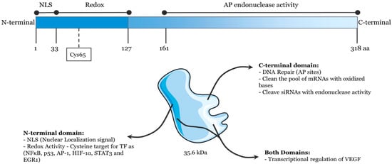 - Lopez, D.J.; Rodriguez, J.A.; Banuelos, S. Molecular mechanisms regulating the DNA repair protein APE1: A focus on its flexible N-terminal tail domain. Int. J. Mol. Sci. 2021, 22, 6308. [Google Scholar] [CrossRef] [PubMed]
