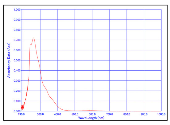 The absorption maximum in the UV region appeared at λmax = 261.0 nm, while the absorption maximum in the visible region appeared at λmax = 583.0 nm. These λmax values are in good agreement with the previously obtained results for this complex (λmax (UV) = 258.0 nm and λmax (Vis) = 588.0 nm) [44].