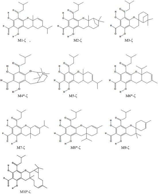 | ζ | Isomer with the acyl group with R = isobutyl attached at C1 (ζ-type) | |