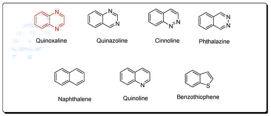 - Sharma, A.; Deep, A.; Marwaha, M.; Marwaha, R.K. Quinoxaline: A chemical moiety with spectrum of interesting biological activities. Mini Rev. Med. Chem. 2022, 22, 927–948. [Google Scholar] [CrossRef] [PubMed]