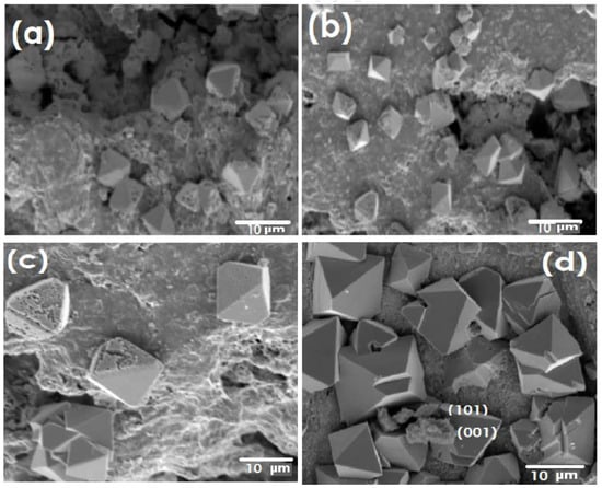 It has been reported that the performance of solar cells relies heavily on the exposed crystal facet. Because the {001} anatase facets are the most exposed in single crystals, they are believed to have a good charge transfer potential [29]. Therefore, anatase TiO2 is the most used electron transport layer in PSCs. Most TiO2 films must be sintered at 500 °C to convert the amorphous oxide layer into crystalline form, which has specific conductivity and reasonable charge transport ability.