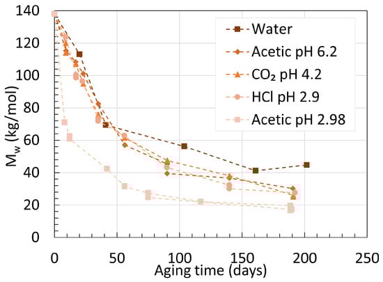 Variations of M for PA11 in different acidic conditions at 120 C. Data combined from both works of Hocker et al. [58,61].