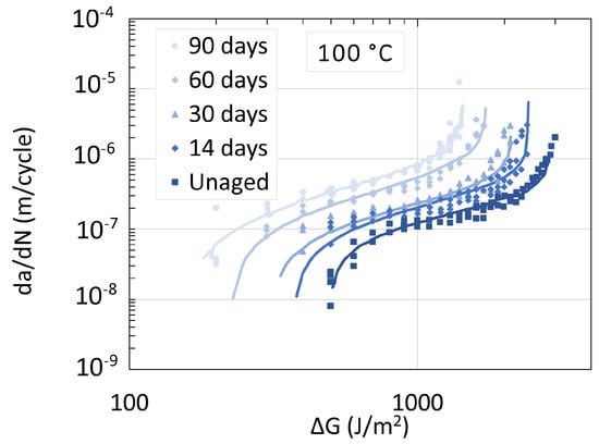 - Arhant, M.; Lolive, E.; Bonnemains, T.; Davies, P. Effect of aging on the fatigue crack growth properties of carbon-polyamide 6 thermoplastic composites using the multi ΔG-control method. Compos. Part A Appl. Sci. Manuf. 2022, 161, 107105. [Google Scholar] [CrossRef]