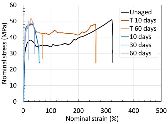 - Olufsen, S.N.; Nygård, P.; Teixeira Pais, C.I.; Perillo, G.; Hopperstad, O.S.; Clausen, A.H. Influence of loading conditions on the tensile response of degraded polyamide 11. Polymer 2021, 229, 123966. [Google Scholar] [CrossRef]