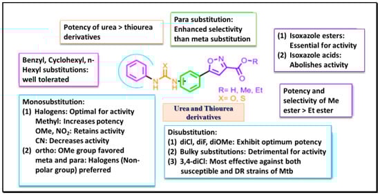 - Santosh, K.S.; Ojaswitha, O.; Sarvan, M.; Priti, S.; Mohammad, N.A.; Grace, K.; Srinivas, N.; Arunava, D.; Sidharth, C.; Venkata, M.Y. Isoxazole carboxylic acid methyl ester-based urea and thiourea derivatives as promising antitubercular agents. Mol. Divers. 2023, 27, 2037–2052. [Google Scholar]