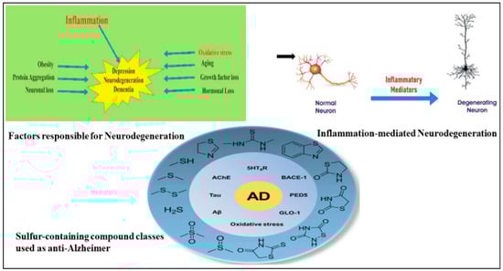- Zhu, H.; Dronamraju, V.; Xie1, W.; More, S.S. Sulfur-containing therapeutics in the treatment of Alzheimer’s disease. Med. Chem. Res. 2021, 30, 305–352. [Google Scholar] [CrossRef] [PubMed]