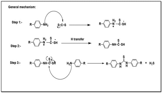 The general mechanism of thiourea derivative synthesis starting with carbon disulfide [13].