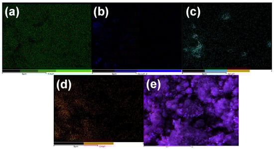 Elemental mapping distribution of the Ti (a), O (b), Ag (c), Cu (d) and mixed elements (e).