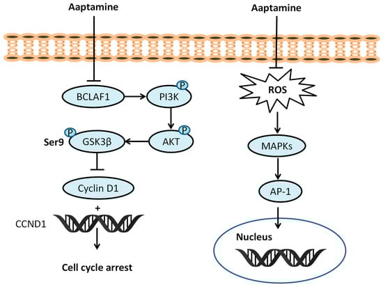 Effect of aaptamine on PI3K/AKT/GSK3β, ROS/MAPKs/AP-1 pathway.