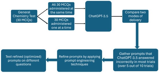 The present study is based on the premise that most ChatGPT users, mainly students, will use it in its default configuration. Thus, the primary goal of this investigation was to evaluate different prompt engineering strategies to incorporate ChatGPT as an instructional tool into higher education chemistry. First, ChatGPT-3.5’s proficiency in answering general chemistry questions was analyzed using a sample of 30 multiple-choice questions which aligned with the “apply level” (21), the “understand level” (3), and the “remember level” (1) of Bloom’s taxonomy (Table 1). Across ten trials, five involving all 30 questions given at once and the other five with questions given one at a time, ChatGPT-3.5 scored an average of 62% (Table S2 in Supplementary Materials). Notably, on three tests, ChatGPT-3.5 secured a passing score of 70%. This average, recorded in November and December 2023, surpassed ChatGPT-3.5’s previously reported scores (18–22%) on comparable introductory chemistry assessments obtained between January and March 2023 [15], demonstrating a notable technological advancement within a few months.
