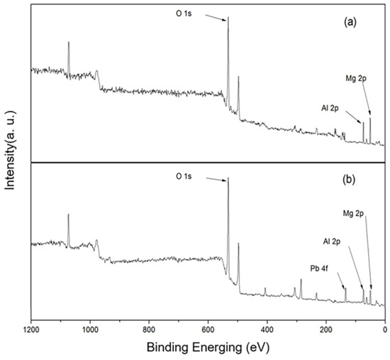 The adsorption mechanisms of Pb2+ onto OSA-LDH were investigated using the XPS method. Figure 9 displays the XPS survey spectra of OSA-LDH before and after the adsorption of Pb2+. In addition to the characteristic peaks of O1s, Al2p., and Mg2p in OSA-LDH, the characteristic peaks of Pb4f are shown in Figure 9(b), indicating that Pb2+ was successfully adsorbed on the surface of OSA-LDH.