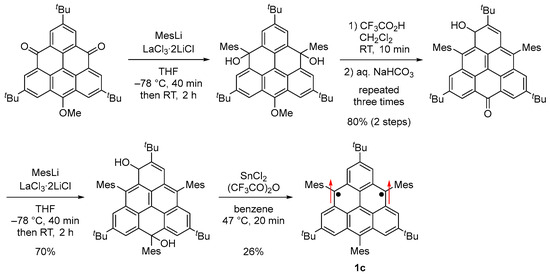 Synthesis of 1c. Arrows indicate electron spin.