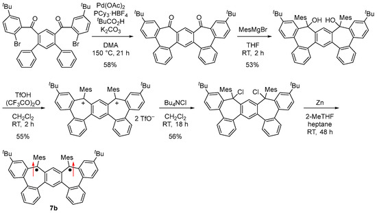 Synthesis of 7b. Arrows indicate electron spin.