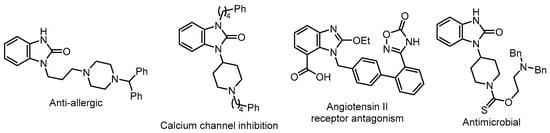 The benzimidazolinone scaffold is an important heterocyclic framework that exhibits various biological, pharmacological, and neurochemical activities, including anti-allergic activity [], calcium channel inhibition [], angiotensin II receptor antagonism [], and antimicrobial activity [] (Figure 1). Benzimidazolinones are utilized in the pharmaceutical and fine chemical industries as building blocks for the synthesis of drugs with diverse biological activities.