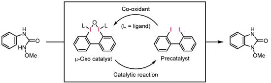 μ-Oxo hypervalent iodine-catalyzed oxidative C–N cyclization for benzimidazolinone synthesis.