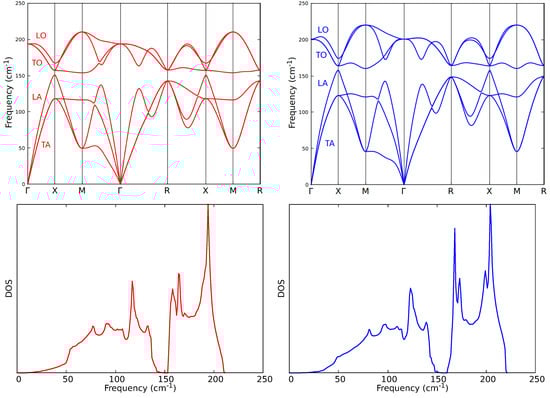 The low-frequency region of the density of states corresponding to the acoustic branches shows a peak at 117 cm−1 with USPP and 123 cm−1 with NCPP. The side peaks in the high-frequency region of the density of states (164 and 194 cm−1 with USPP, 168 and 204 cm−1 with NCPP) corresponding to the optical branches are typical of ordered structures [42].