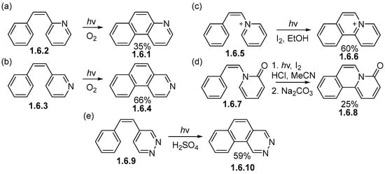 - Loader, C.E.; Timmons, C.J. Studies in Photochemistry. Part II. The Photocyclisation of Stilbazoles to Azaphenanthrenes. J. Chem. Soc. C 1966, 1078–1081. [Google Scholar] [CrossRef]