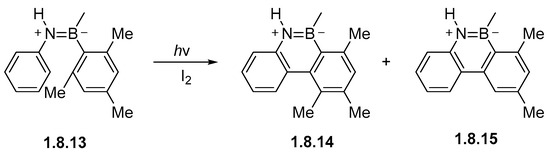 - Glogowski, M.E.; Grisdale, P.J.; Williams, J.L.R.; Regan, T.H. Boron Photochemistry: X. Anilinodiaryl Boranes: Their Synthesis and Photochemistry. J. Organomet. Chem. 1973, 54, 51–60. [Google Scholar] [CrossRef]