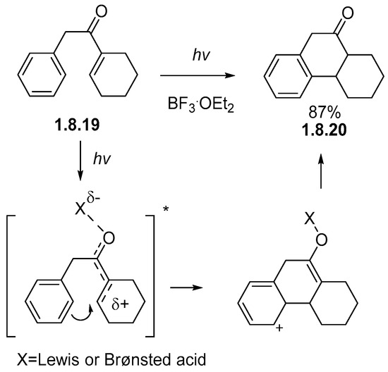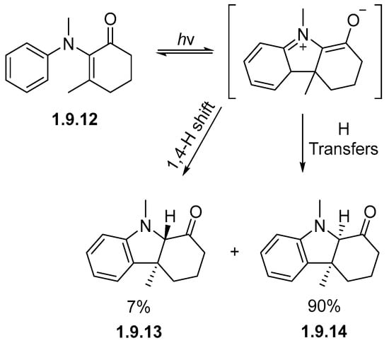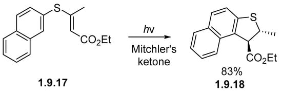 On the other hand, the photocyclization of o-divinylbenzenes such as 1.4.5 proceeds via the formation of 2,3-dihydronapthalene [83]. Due to the absence of an oxidant, such as O2 or I2, the reaction is completed via a 1,5-hydrogen shift, returning conjugation to the molecule to yield the tetracyclic product 1.4.6 in a 70% yield (Scheme 23).