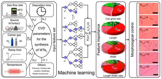 - Xu, M.; Tang, B.; Lu, Y.; Zhu, C.; Lu, Q.; Zhu, C.; Zheng, L.; Zhang, J.; Han, N.; Fang, W.; et al. Machine Learning Driven Synthesis of Few-Layered WTe2 with Geometrical Control. J. Am. Chem. Soc. 2021, 143, 18103–18113. [Google Scholar] [CrossRef]