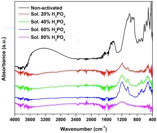 | Functional Group | Non-Activated Carbon (cm−1) | Activated Carbon (cm−1) |