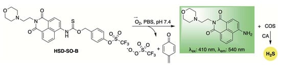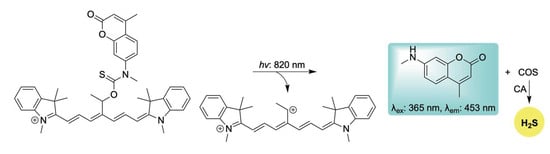 - Hua, W.; Zhao, J.; Gou, S. A Naphthalimide Derivative Can Release COS and Form H2S in a Light-Controlled Manner and Protect Cells against ROS with Real-Time Monitoring Ability. Analyst 2020, 145, 3878–3884. [Google Scholar] [CrossRef]