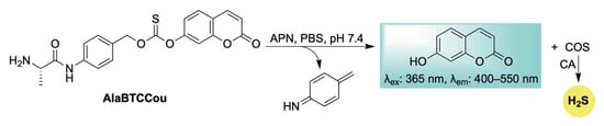 Among these, esterases—ubiquitous enzymes that hydrolyze ester bonds—have been harnessed to develop efficient H2S donors with tunable release profiles [110,111]. However, to our knowledge, previously reported esterase-activated donors lack self-reporting capabilities for tracking H2S delivery.