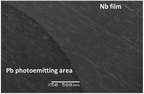 SEM micrograph of a sample at the interface between the photo-emitting spot of Pb bulk and Nb film in the non-conventional configuration (reproduced from ref. [154]).