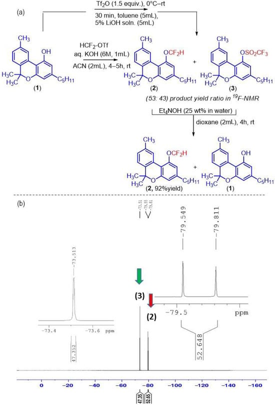 3.2. Difluorination of CBN to a Mixture of Difluoromethyl Ether of Cannabinol and Cannabinol Triflate
