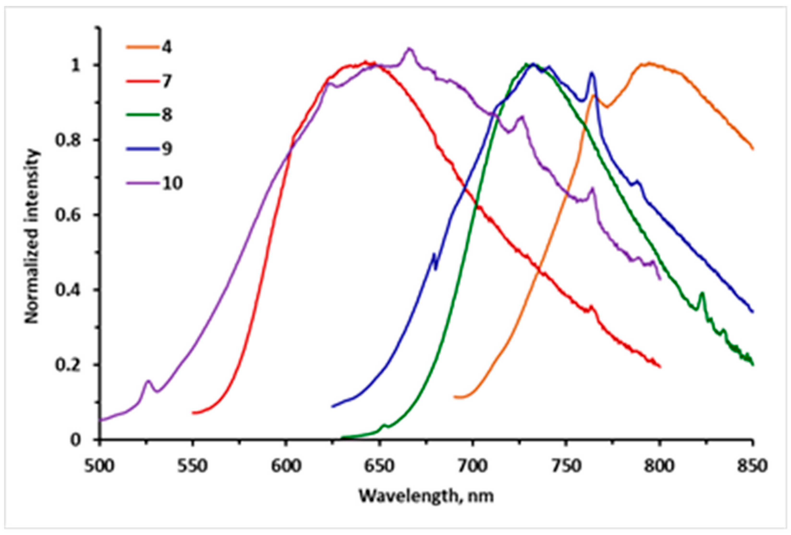 - Radiush, E.A.; Korshunov, V.M.; Chulanova, E.A.; Konstantinova, L.S.; Ferulev, A.I.; Irtegova, I.G.; Shundrina, I.K.; Frank, E.A.; Semenov, N.A.; Taidakov, I.V.; et al. Polycyclic 1,2,5-chalcogenadiazole dyes: Structural, optical, and redox properties in neutral and radical-ion states (chalcogen = S, Se). Dyes Pigment. 2025, 242, 112922. [Google Scholar] [CrossRef]