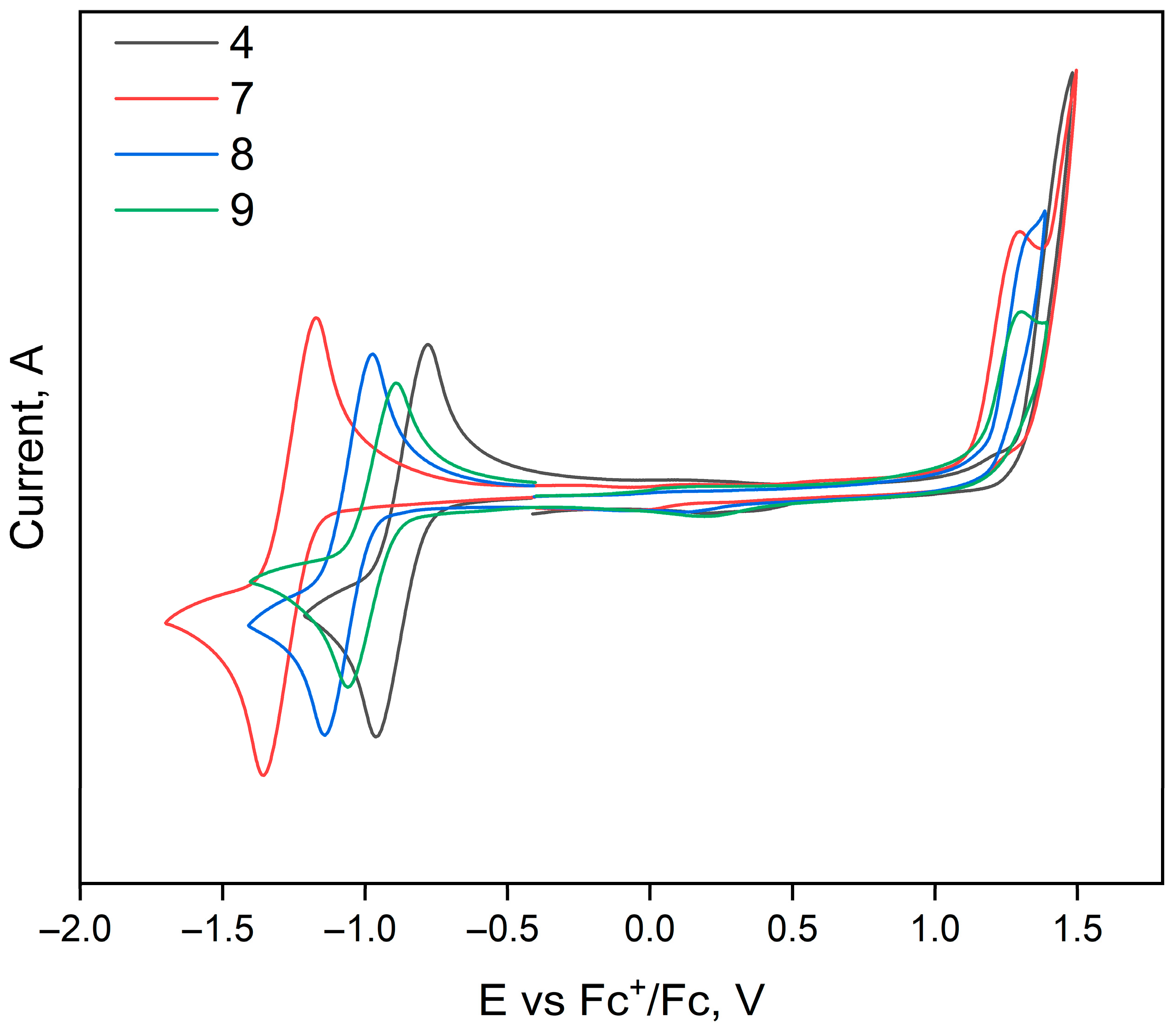 3.4. Electrochemical Properties of the Polycyclic Compounds