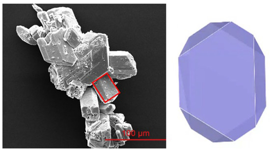 The crystal morphology of LTNR in the water predicted by the modified AE model (right) and the corresponding experimental shape (left) [33].