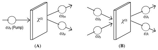 For example, the Fourier component in Equation (26) indicates the generation of a polarization wave with frequency = with respect to three incident fields with frequency . In general, can be related to the intensity independent perturbative l-th order susceptibility as