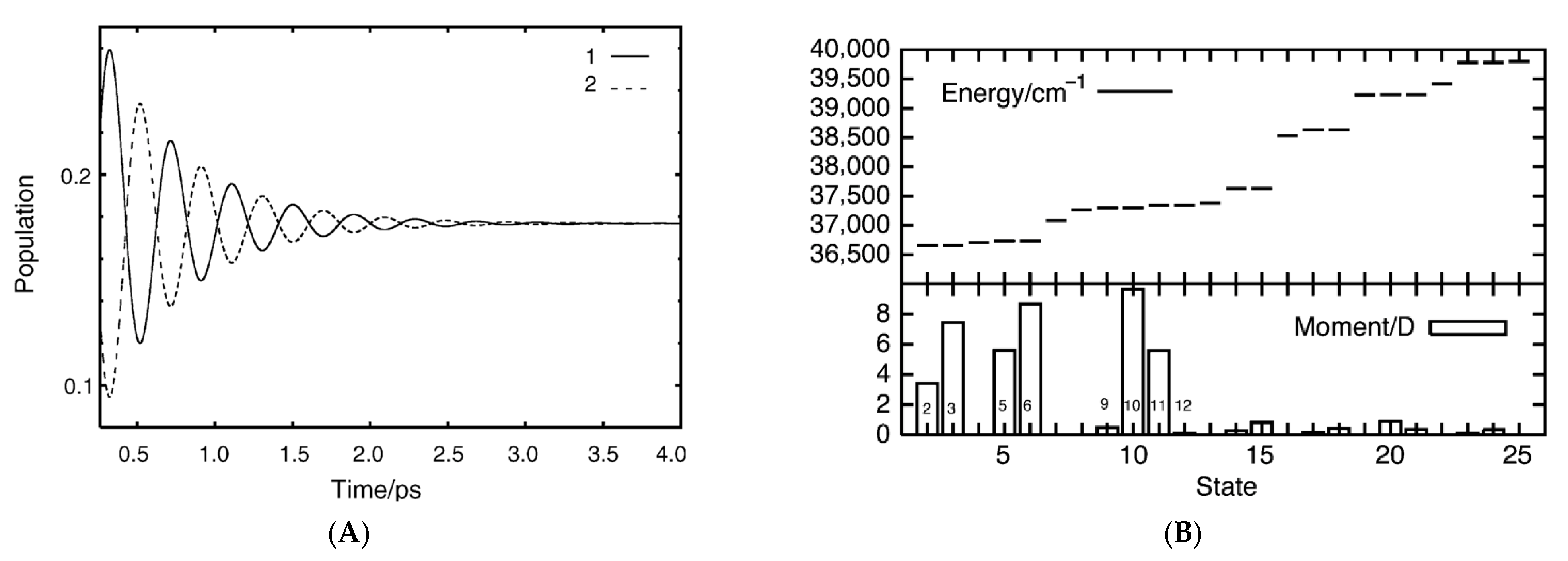 5.1. Quantum Dynamics Simulations and Level Models for Quantum Optics of Molecules