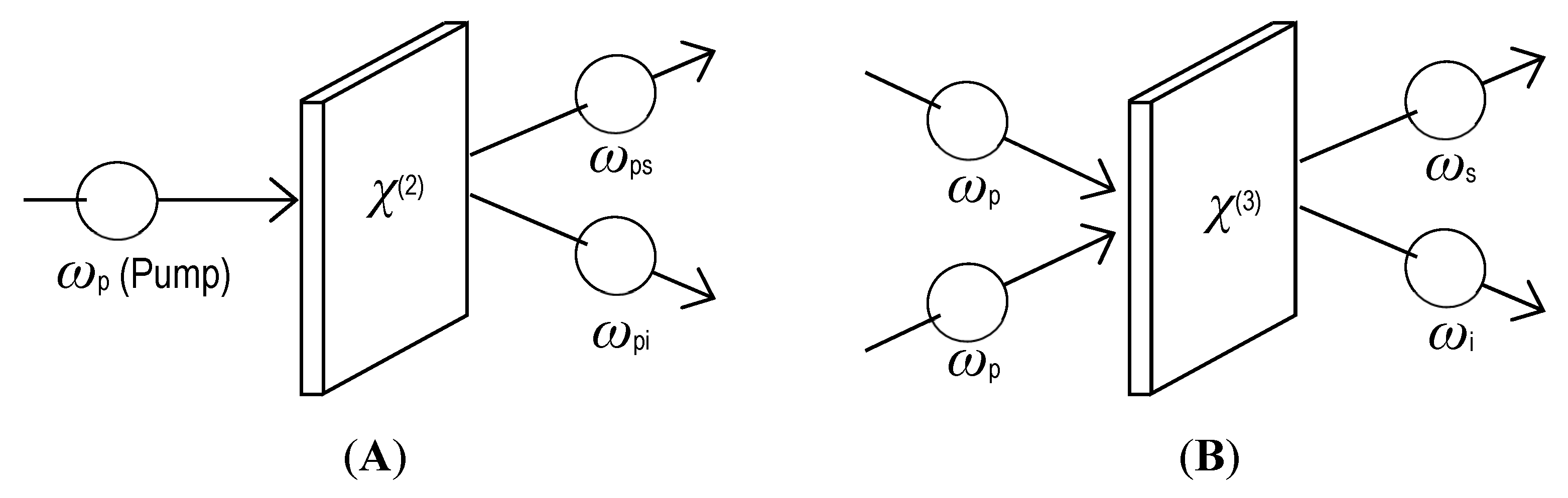 7.1. Down-Conversion and Four-Wave Mixing for Generation of Entangled Light Pair