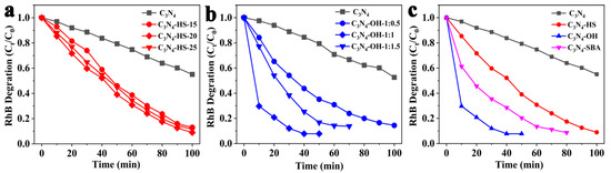 - Xiao, H.; Wang, W.; Liu, G.; Chen, Z.; Lv, K.; Zhu, J. Photocatalytic performances of g-C3N4 based catalysts for RhB degradation: Effect of preparation conditions. Appl. Surf. Sci. 2015, 358, 313–318. [Google Scholar] [CrossRef]